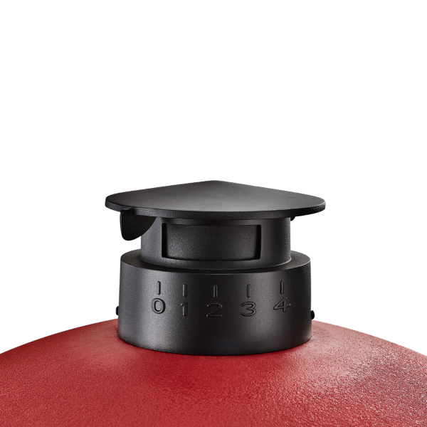 • Aluminium top, and stainless-steel bottom vent, both with position indicators to accurately control temperatures.