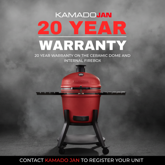 For the entertainer! Become the ultimate grill master for all your family & friends with the X-Large Kamado Jan Gen 4. Big Jan offers a 63.5cm ceramic diameter with a spacious 55cm diameter cooking surface. As on the Large model, the Divide & Conquer system is standard and allows you to create multiple heat zones thereby cooking different foods at different rates all at the same time. Although weighing in excess of 120kg, the X-Large remains very mobile thanks to the latest robust leg stand and 4 x large rubber caster wheels (2 of which are lockable). Two spacious HDPE side trays offer enough working space on either side of the grill, and built-in utensil hooks on each tray keep all your grilling tools nearby. The double-thick, mesh fiberglass gasket offers a superior air-tight seal, while the new Aero-Lift hinge makes opening and closing the ceramic lid so easy.