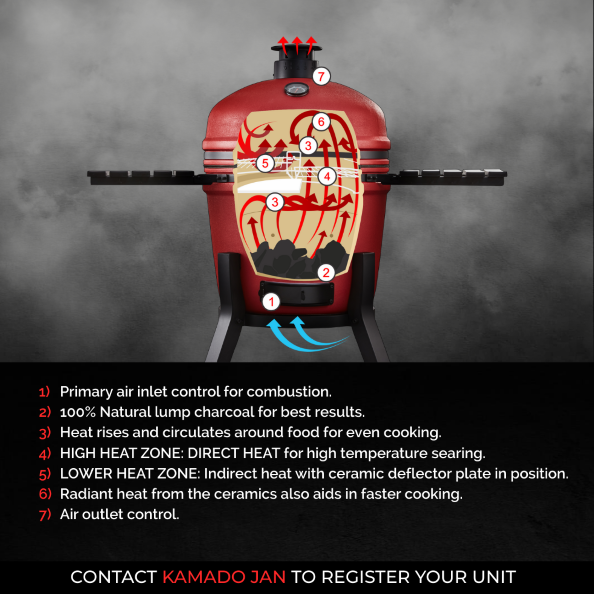 • Unique bubble glaze exterior finish gives the new Gen 4 Kamado Jan a more modern look.