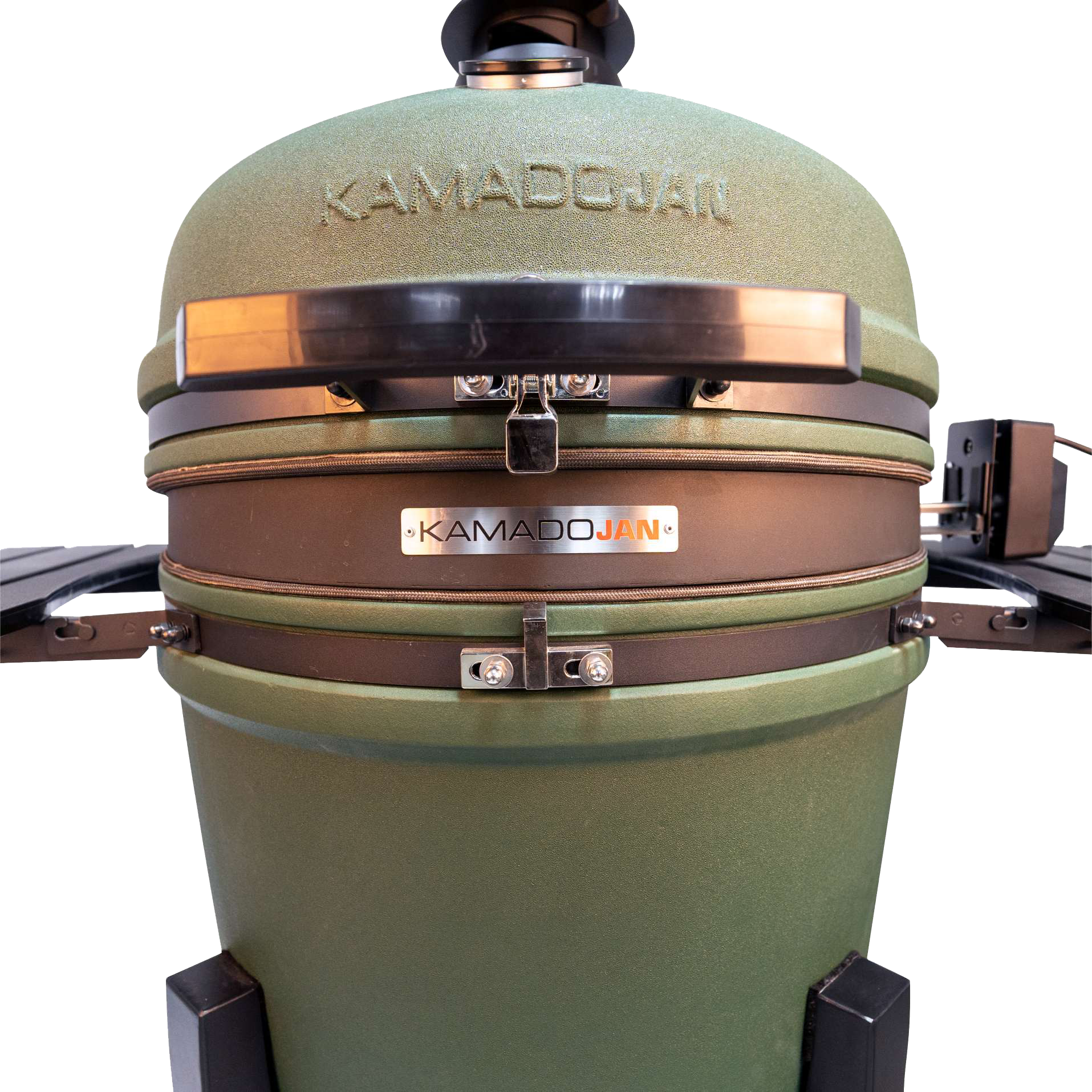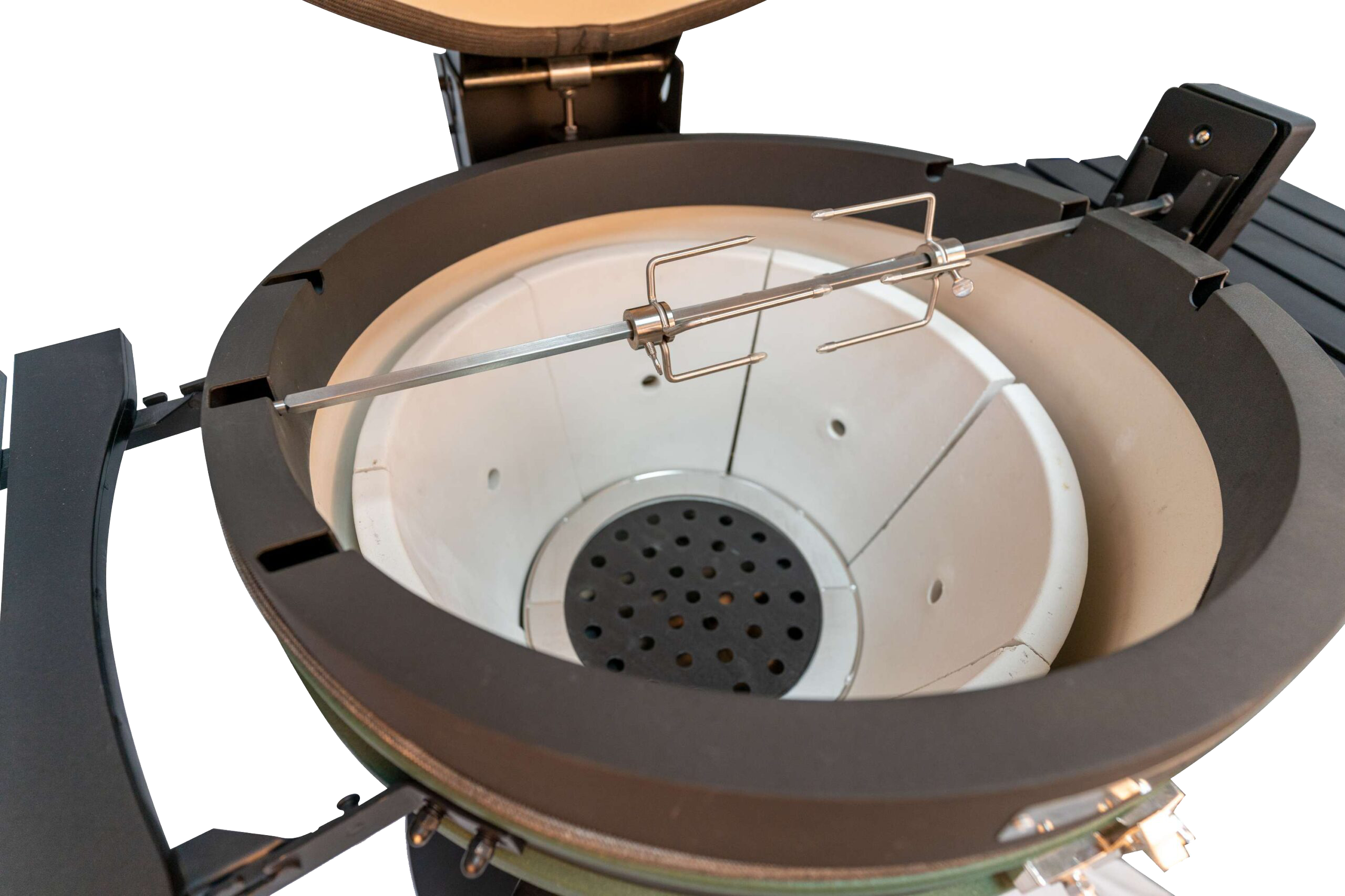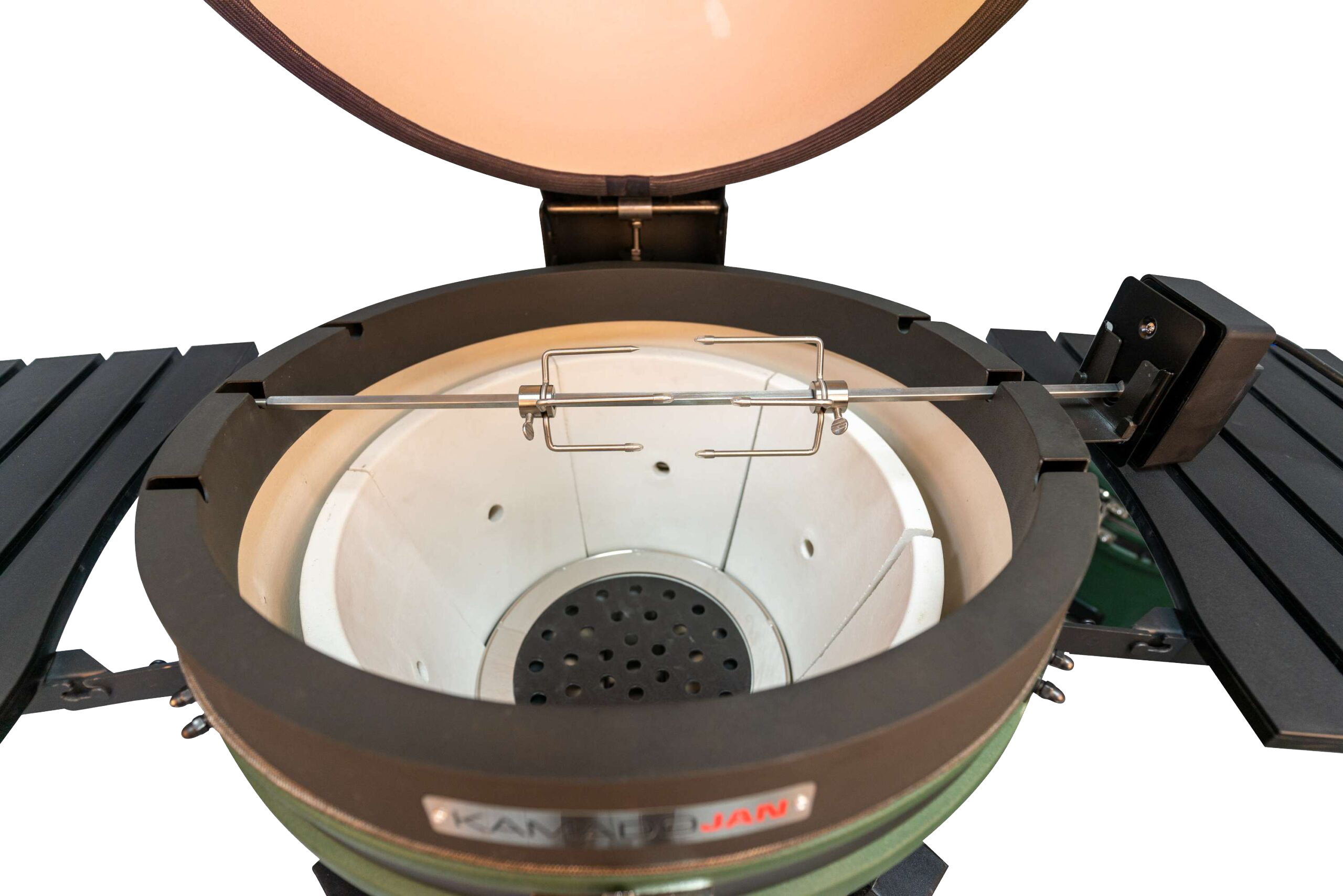 Or as low as R741.67 / month interest-free, using your existing credit card. For orders over R10,000.00.How it worksThe Kamado Jan rotisserie is the ultimate plug & play spitbraai solution. No alterations needed. The tapered wedge steel ring allows normal operation of the rotisserie with the Kamado Jan lid closed for complete temperature control. Achieve incredible caramelisation at lower temperatures including the self-basting action the rotisserie provides.